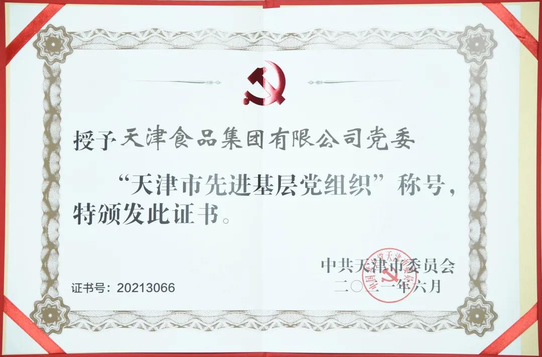 市領(lǐng)導(dǎo)同志為“光榮在黨50年”老黨員代表頒發(fā)紀(jì)念章,為受表彰的市優(yōu)秀共產(chǎn)黨員、優(yōu)秀黨務(wù)工作者和先進(jìn)基層黨組織代表頒獎。天津食品集團(tuán)黨委榮獲“天津市先進(jìn)基層黨組織”榮譽稱號,集團(tuán)黨委書記、董事長萬守朋代表集團(tuán)黨委領(lǐng)獎。